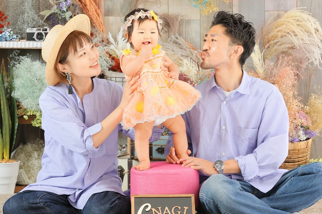 スタッフはお子様の撮影に慣れていますのでご安心ください。お店にはオモチャやぬいぐるみなども用意しております。またいつも遊んでいるオモチャやお気に入りの絵本、おやつなど、お持ちいただくと良いと思います。どうしても撮影が難しい場合は、別の日にご予約いただき再チャレンジすることも可能です。