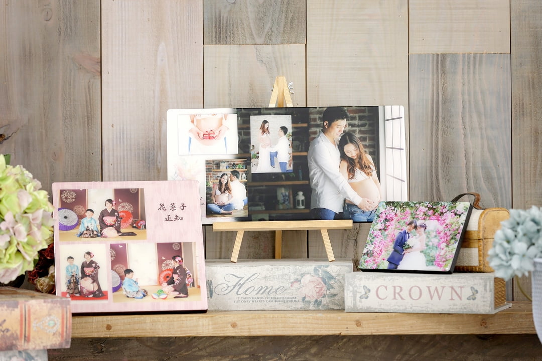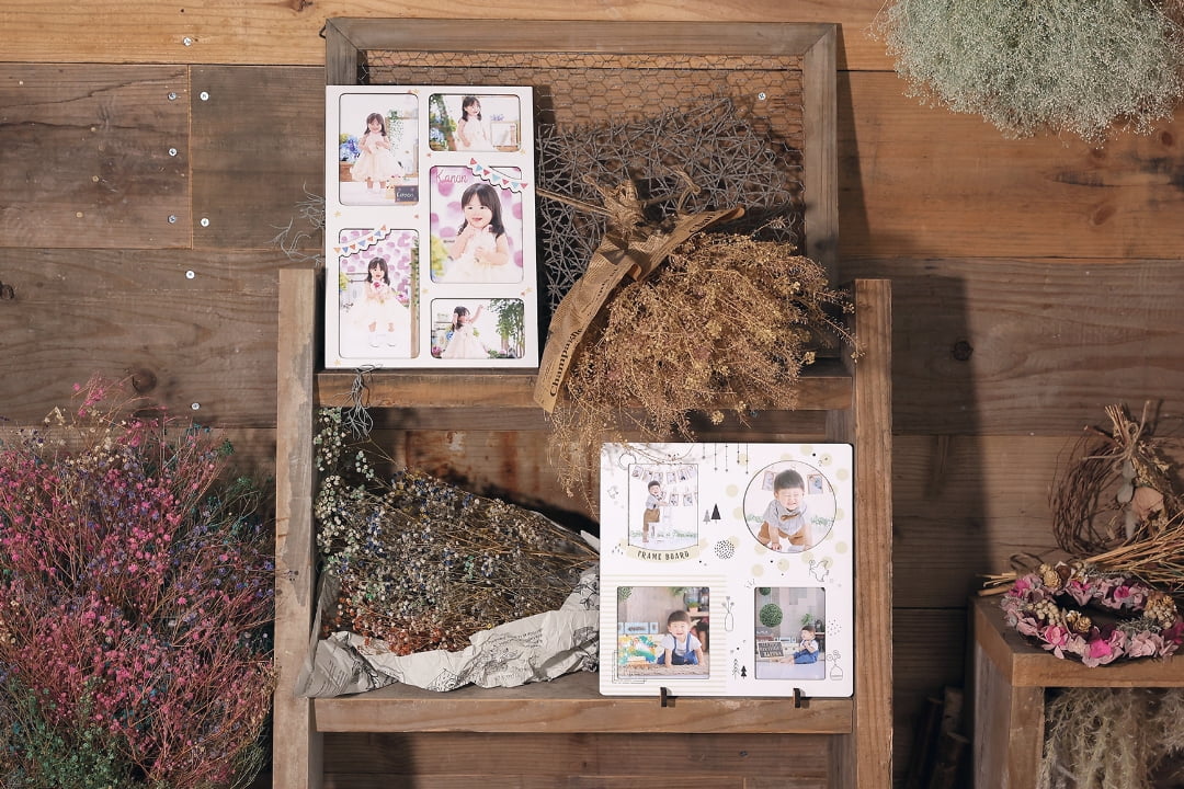 1枚のボードに複数の写真が収められる楽しさ満点のアイテムです。おじいちゃんおばあちゃんへのプレゼントにおすすめです